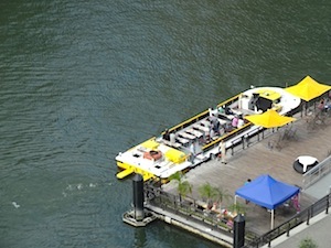 会場からふと見下ろすと遊覧船が・・・