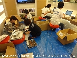 宮城県東松島市へお届けする支援物資の仕分け・梱包作業、